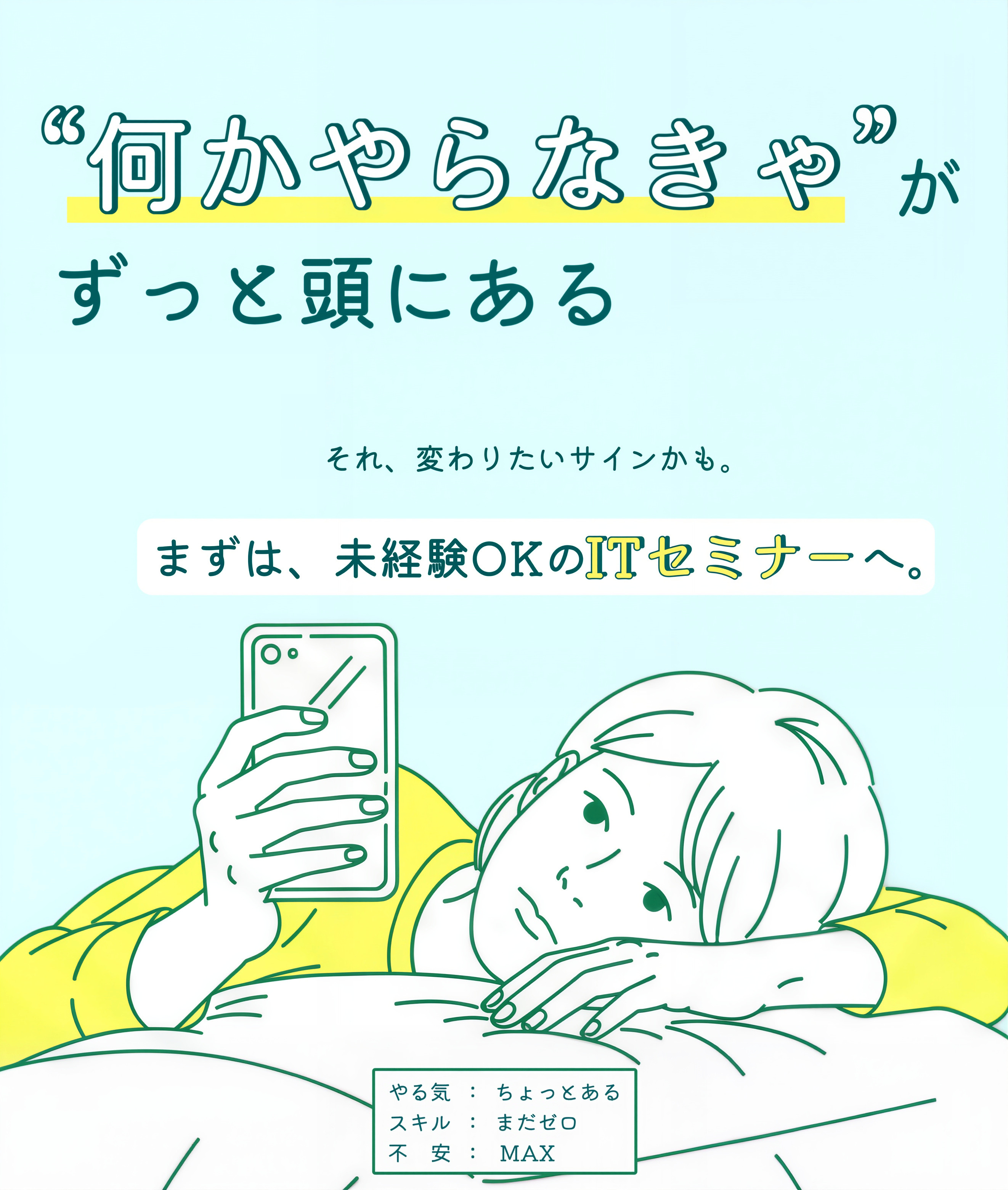 一切ありません。私たちの目的は、あくまで中立的な立場での情報提供です。まずは「話を聞くだけ」という気軽な気持ちでご参加いただければと思います。